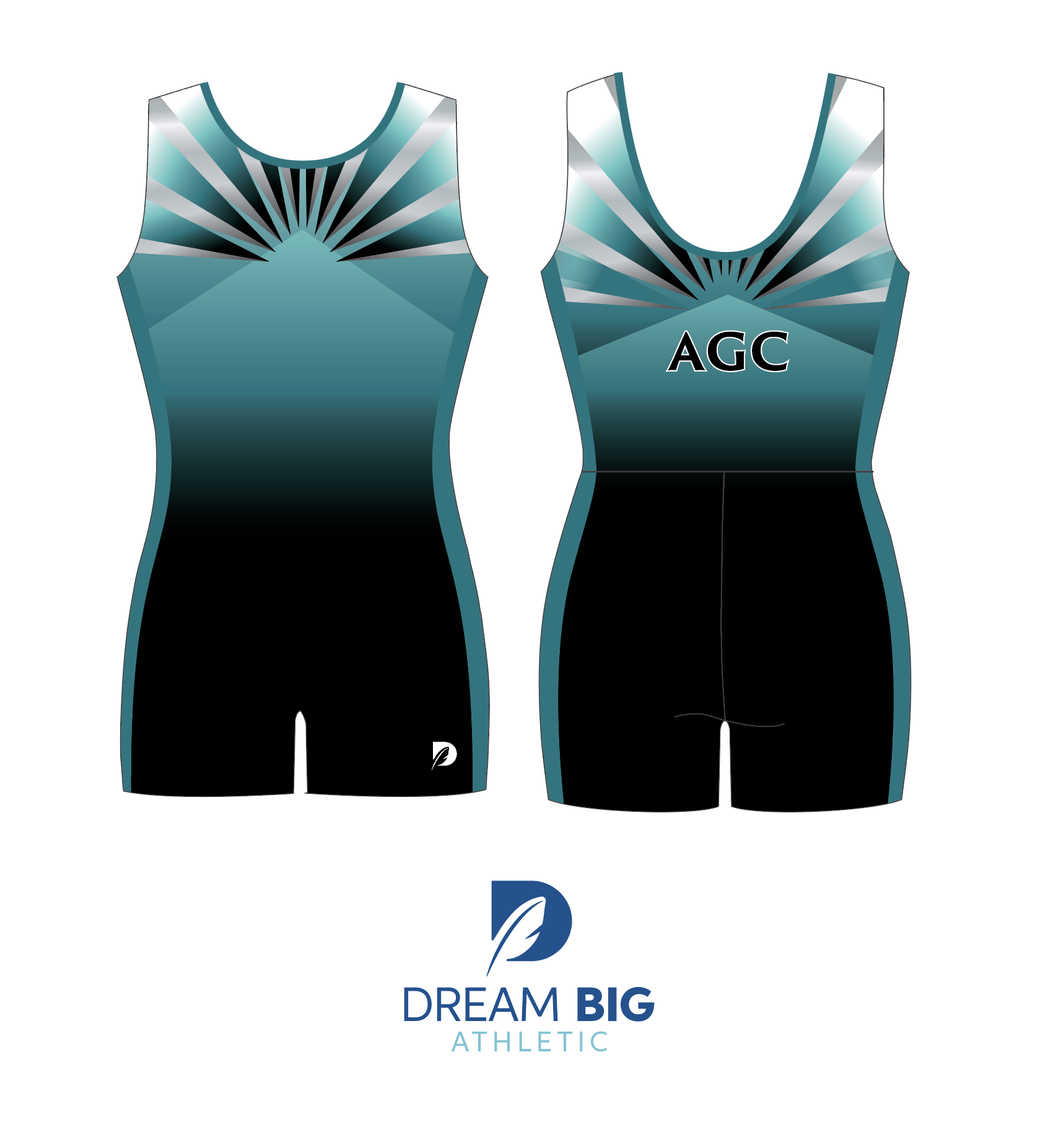 Achieve Gymnastics Biketard. Design 2 of 2 available designs. Polyester / Spandex. Super soft and stretch material. No tags. Please allow 8 weeks for custom production time.