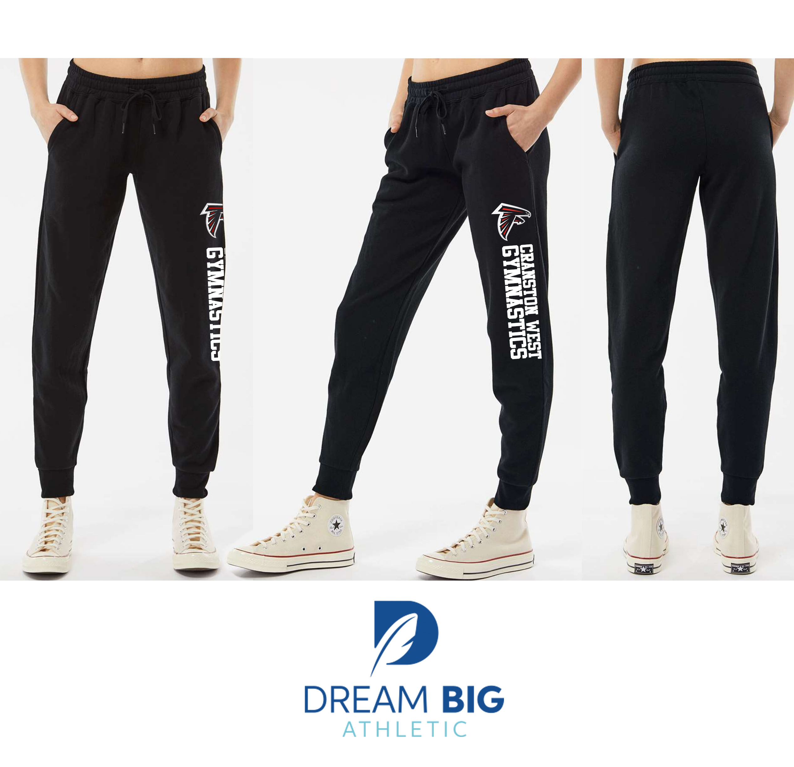 Choose Options Dream Big Gymnastics Jogger $50.00 Dream Big Gymnastics Black Jogger with gold glitter logo. Please allow 3 weeks for custom production…